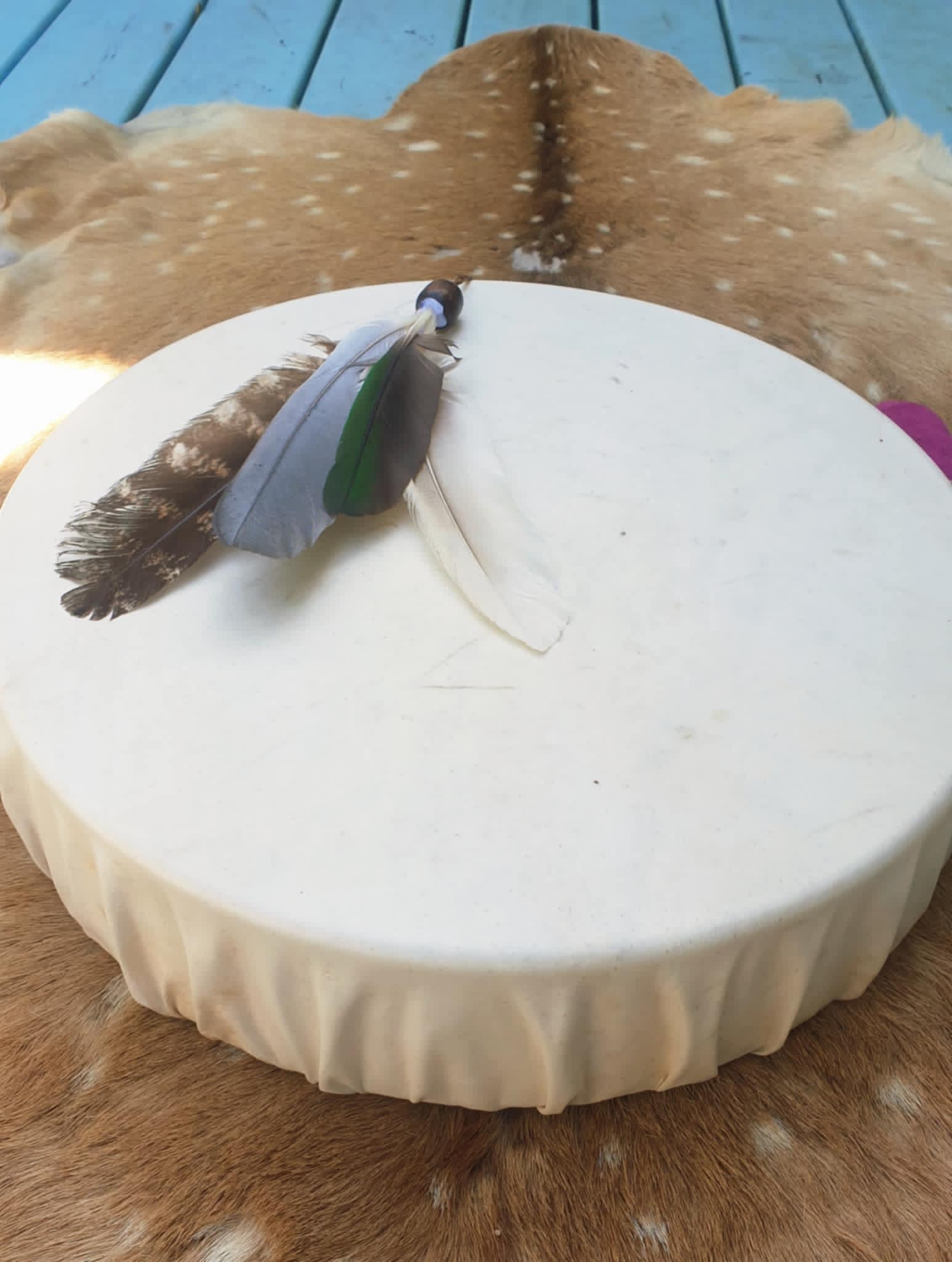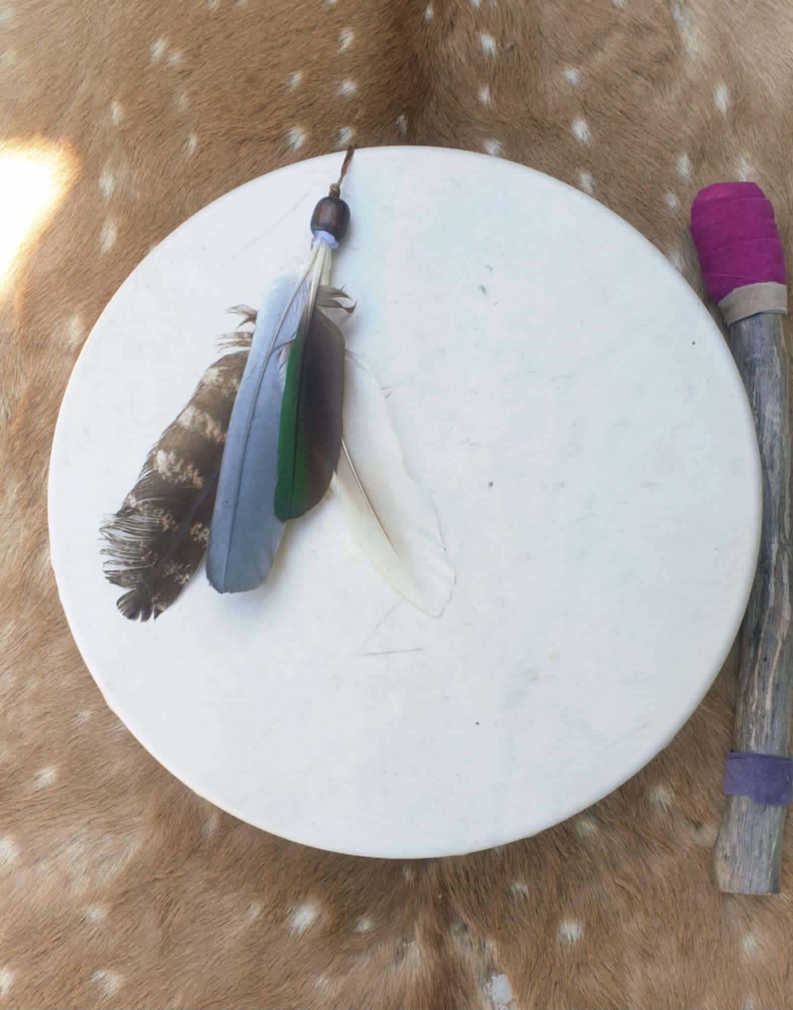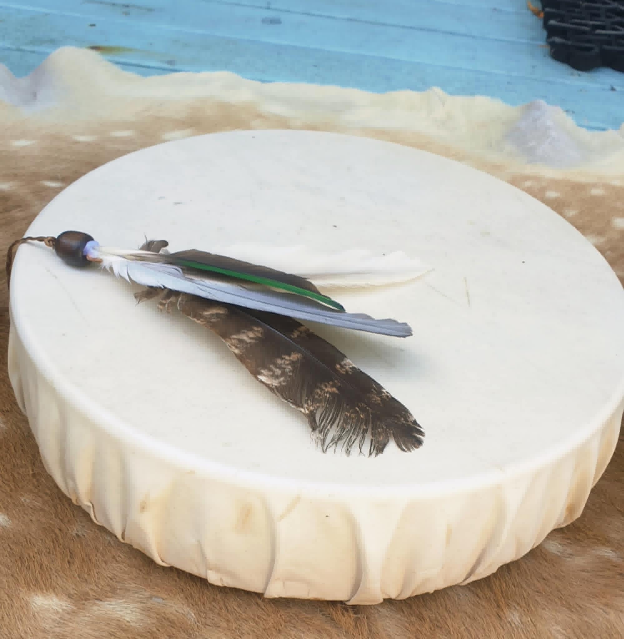 A NATIVE DRUM is a creative loving instrument for healing and for connection to Spirit and Soul, each POWERFUL DRUM has a strong resonant, and sonorous VOICE.... it resonates with the heart beat & our hearts sing... its full PERSONALITY AND PURPOSE ready to unfold with YOU…both beautiful to look at & to listen to and ready to sing with its new PARTNER!